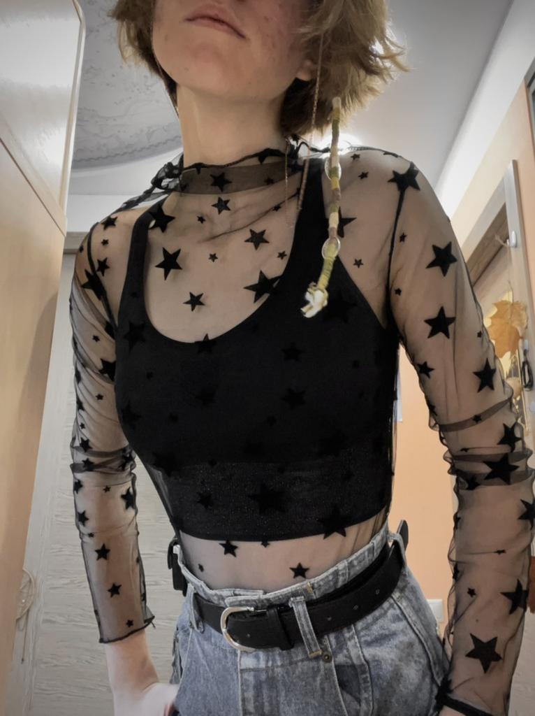 Женская сексуальная сетчатая прозрачная футболка, модная полая прозрачная рубашка, топ в горошек со звездами, клубная одежда — купить товар онлайн с бесплатной доставкой по всему миру!