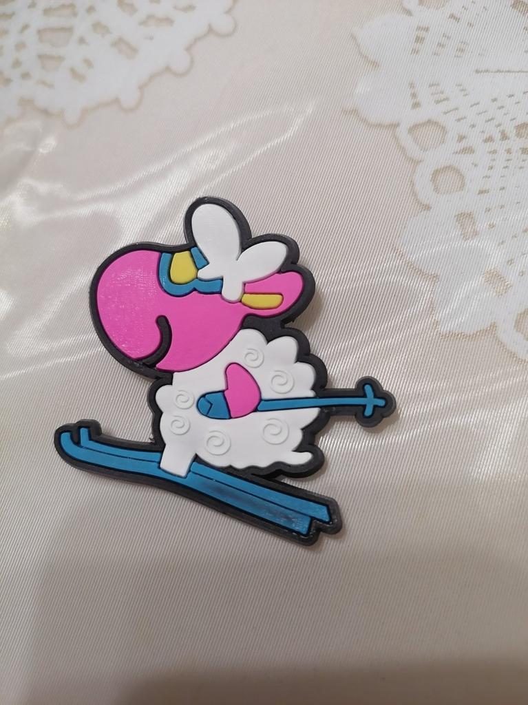 Прикольная овечка. Только почему то вместо загорелой, коричневой мордочки овечки, представленной на фото в профиле, прислали овцу с ярко розовой мордой. Замёрзла, наверное, кататься на лыжах!
