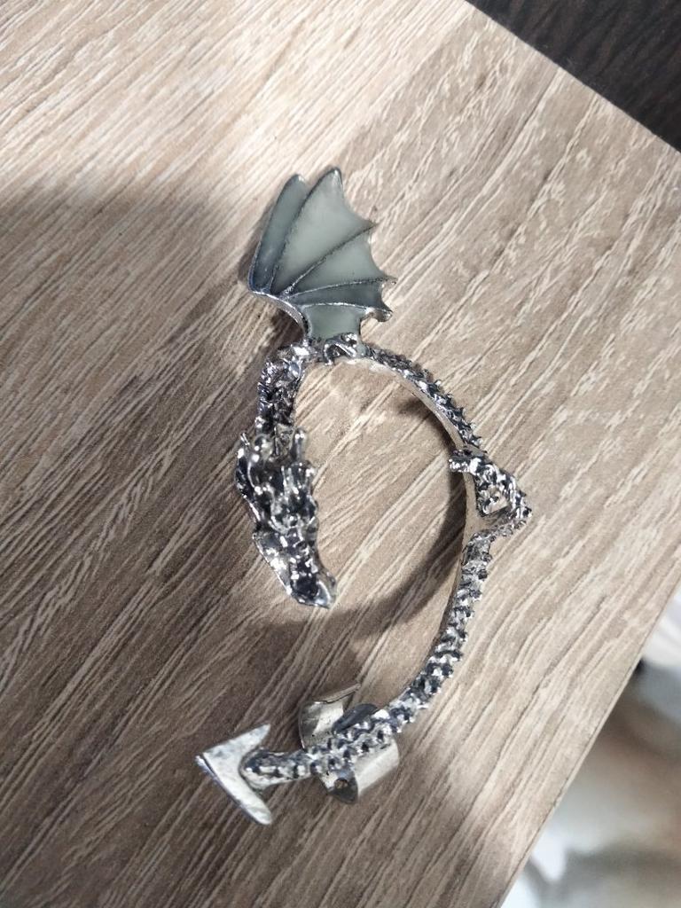 Не совсем то, что ожидала. На ухо прикрепила, на пол уха:))) тяжеловат дракончик и не удобно одевать. Лапки, которыми зажимает ухо жёсткие, плохо регулируются, да и сама конструкция вызывает через время дискомфорт. Одеть и поприкалываться конечно можно.