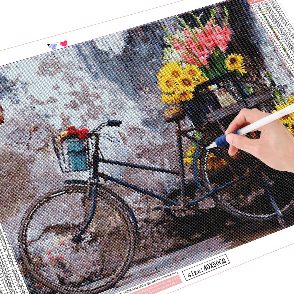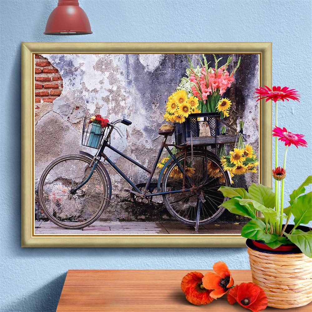 5d Алмазная картина Велосипед с квадратными камнями Цветочный домашний декор Алмазная вышивка