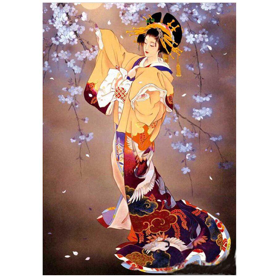 Алмазная картина "Японка" Полный круглый дрель Настенный декор Смола Стразы Вышивка