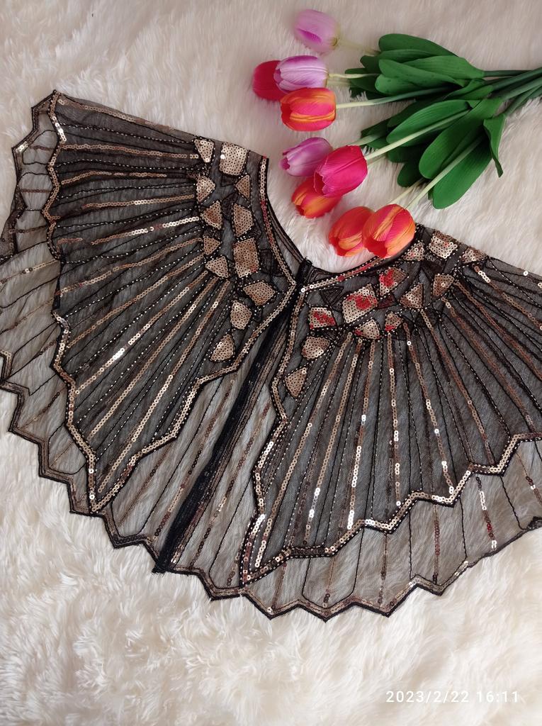 Получила свою посылочку и хочу сказать, что хоть я и выписывала такие пелериночки две штуки: красную для красного платье и золотую для чёрного платья, а мне вложили две просто чёрных, но я осталась довольна, потому что чёрная тоже смотрится красиво, сияет по своему. А красную и золотую я, выписала почти сразу, как только увидела в отслеживании, что мне идёт посылка с двумя чёрными. Сначала думала, что не буду получать их, а, когда они подошли, то получила их и нисколечко не жалею. Теперь у меня будет красная, золотая, две черные, одну из которых подарю сестре, или племяннице, и нужно будет выписать мне ещё и зелёную, чтобы был полный комплект.