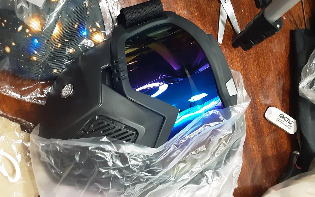 Классная маска и очки, очень хорошо видно, не запотевают. Есть немного запах пластмассы, но думаю что выветрится. Смотрится хорошо, особенно с шлемом, без ничего только шапка и маска со стороны выглядит немного смешно, особенно сбоку