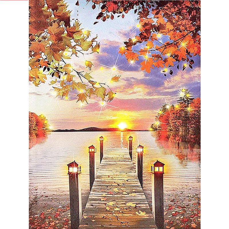 Мост Пейзаж Искусство DIY Алмазная картина по номерам Закат Пейзаж Раскраска Холст Картина