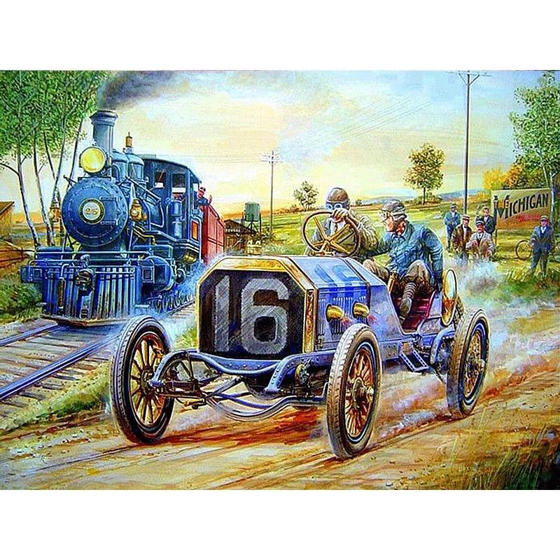 DIY Алмазная вышивка Поезд и автомобиль Полная круглая алмазная живопись Вышивка крестом