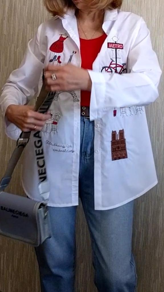 ✨✨✨ вышитая РУБАШКА 🔥 от survenyue 💞 🔸МАТЕРИАЛ - тонкий белоснежно-белый поплин (из такого шьют мужские ) 🔸Крой по типу мужской рубашки с вышивкой спереди и со складкой на спинке. 🔸ВЫШИВКА машинная, в романтическом стиле (Париж) 🔸Изделие фабричное. Как из люкс - маркета 👍👍👍 РЕЗЮМЕ: Вещь!!! 🤗😘👌🔥 На 162 - 88 - 68 - 98 см в размере М ( ориентировалась по размерной шкале продавца: смотрела по рукаву и плечам. Рубашка села, как хотела: в свободном прилегании, без излишества объема. Ручные МЕРКИ: Ширина между проймами - 55 Плечевой шов 12,5 Плечо - 39 Длина рукава - 60 Длина изделия - 73 Ширина по Низу - 57 А после ручного измерения, пришла к выводу, что в рубашке родилась 🤩 Изделие заточено на наш привычный размер. 📢 от Души РЕКОМЕНДУЮ 🛒 Спасибо Joom 💕🙏 ✈️17.01 - 8.02 динамичным треком по пути следования. Всем Мира, праздничного Настроения с капелюшечкой Романтики 😊 и океан Удачи 💐❤️