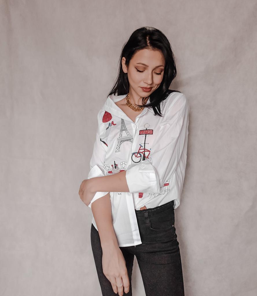 Рубашка с вышивкой🍒 Ох как же она мне нравится 🥰 Классический крой, но в то же время не классический дизайн. Ярко, стильно, нестандартно. Добавляем красные губы и идём покорять мир🌍👠 Рубашку доставили за три недели. Упаковано в пакет. Бирка есть. Рубашка из деликатного хлопка. Она слегка просвечивает, но не вульгарно. Телесное белье не будет видно под ней. На лето она будет просто идеальным вариантом. Она слегка просвечивает, ткань дышит. В ней будет вообще не жарко, не смотря на длинный рукав. Его можно красиво подкатать до локтя и будет смотреться круто. Вышивка выполнена аккуратно. Пуговки пришиты более менее крепко. На рукавах тоже есть пуговки. Пара ниточек торчит, но обрезать их - не проблема. На мои параметры 83/62/90/161/52 рубашка в размере S села свободно, мне очень нравится. На мой рост она достаточно длинная. Мне кажется, что на пляже можно носить с купальником как тунику. А вообще она настолько универсальная, что я не представляю места, куда бы в ней нельзя было пойти - в кафе, кино, на работу, на пляж, на прогулку. За счёт свободного кроя ее можно по разному надевать - я показываю два варианта - классический и необычный (перепутав пуговицы и заправив в джинсы только одну сторону). Но таких вариантов ещё миллион - будет круто смотреться с футболкой или топом под рубашкой, можно как-то завязать...в общем только ваша фантазия ограничивает варианты🙌 Я в восторге от рубашки. Позже ещё на видео покажу как смотрится 🤩. К покупке рекомендую 💕