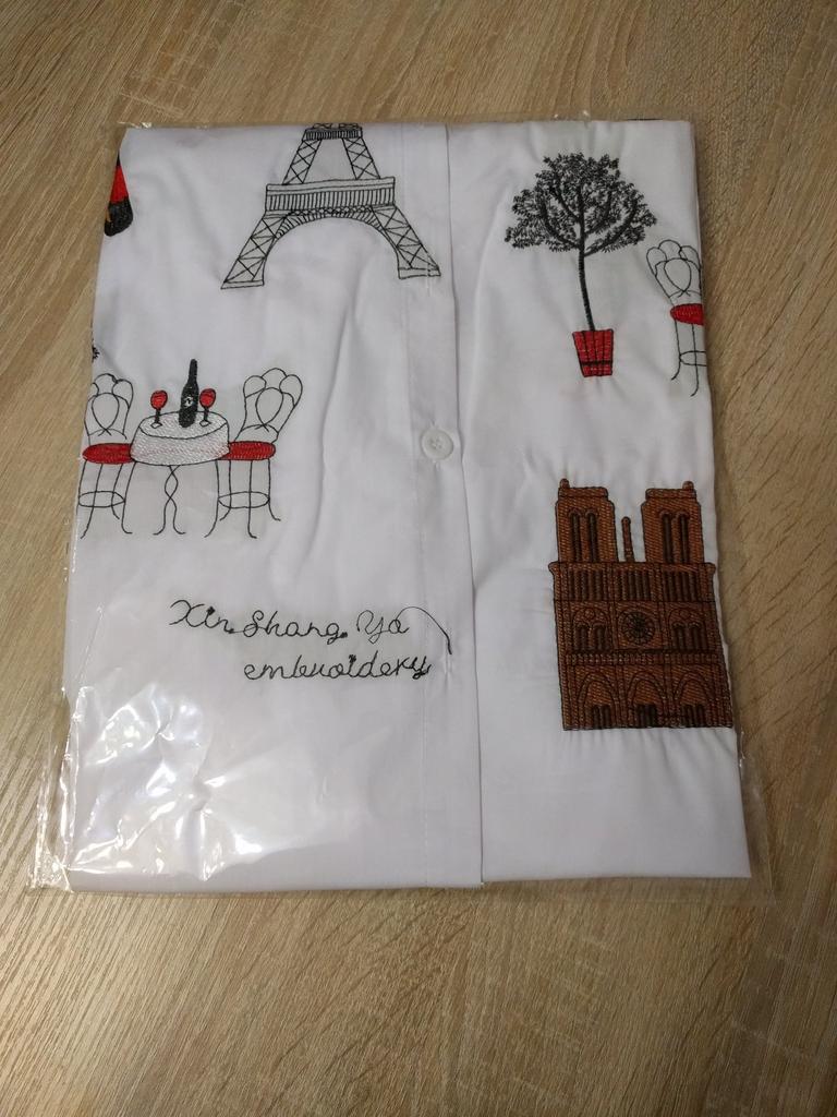 😉 Не РУБАШКА, А БЕЛОСНЕЖНАЯ ПРЕЛЕСТЬ С ВЫШИВКОЙ❗🗼🚲💋 На 170/95-73-98 брала XL, резюмирую: 🔹Пошив качественный, фабричный. Строчки ровные. Ткань однородная гладкая, смесовая: тонкий хлопок белого цвета, приятный к телу + присутствует полиэстер. Плоские пуговицы на 4 отверстия очень простят и "оскорбляют" рубашку — буду перешивать! 🔹Рукава коротковаты на мои руки, хотя по длине плеча все идеально село, поэтому буду подворачивать. Из-за низкой проймы немного тянет по линии груди. В местах нашивок ткань рубашки чуть плотнее и грубее, в остальном — тонкая, шелковистая и тактильно приятная, немного мнется. 🔹Покупкой довольна! Рубашка по нраву не мне одной 😉, поэтому РЕКОМЕНДУЮ. Благодарю ПРОДАВЦА и Joom 💞 Сроки заказа: 26.07 - 21.08.2021