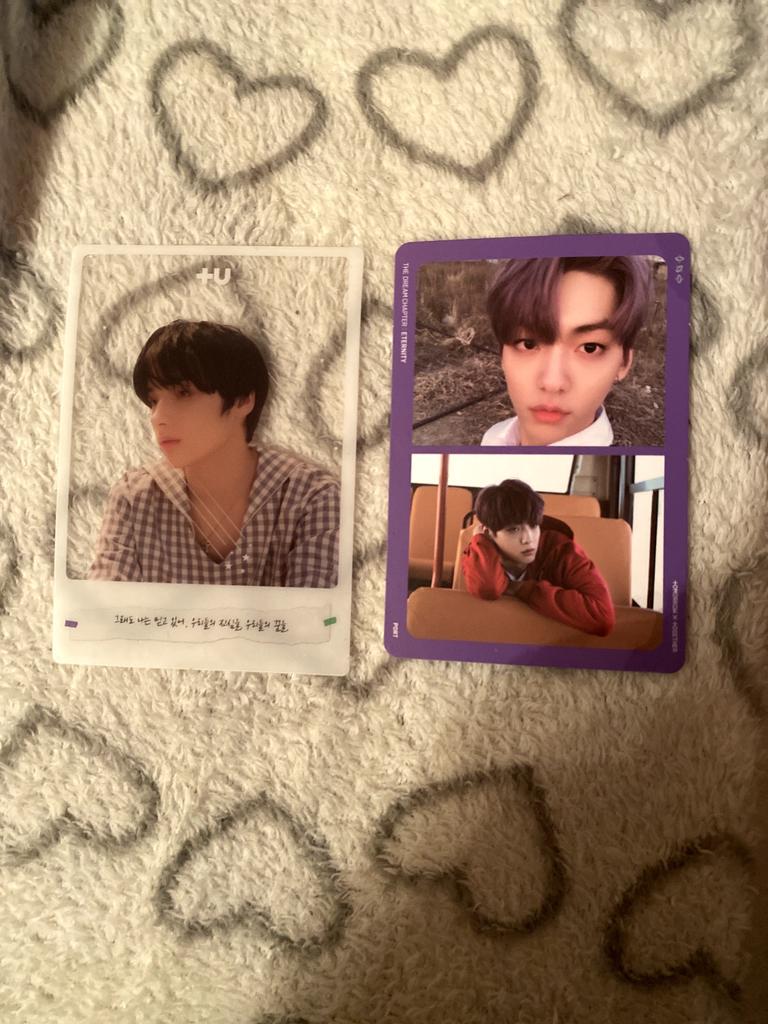 Альбом пришёл с целости и сохранности! Нигде не поврежден. На первой фотографии плакат (Он немного помялся, но я подержала его под прессом и все стало нормально). На третьей фотографии сверху стикеры, а снизу открытка. Надпись на задней стороне открытки примерно переводится как «Не забывай, что мы вместе, это факт». Карточки попались с Субином и Каем, чему я очень рада, ибо Субин мой биас😻 Также присутствует карточка с QR-кодом и 2 карточки которые продавец положил в подарок - с Тэхёном и общая. Альбом пришёл примерно за 10 дней до Москвы)) Я очень довольна, продавца рекомендую❤️