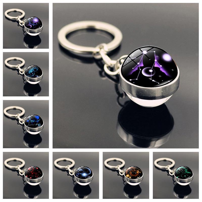 Брелок для ключей в виде стеклянного шара с изображением знака зодиака