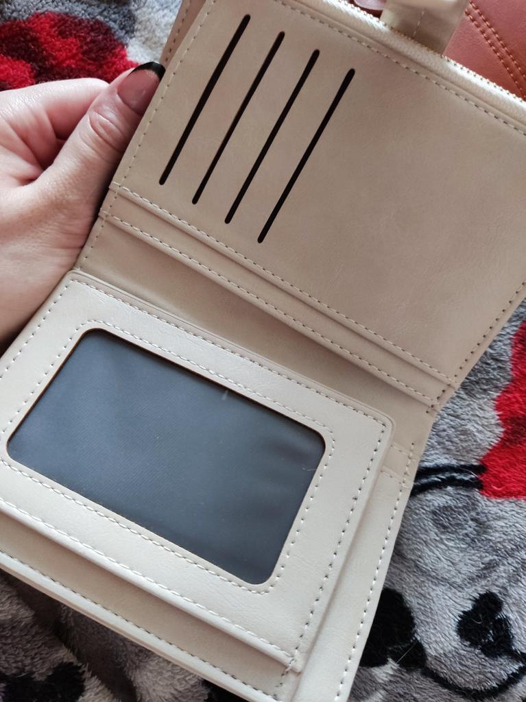 Заказ пришёл довольно быстро, заказывала два кошелька, белый и коричневый. Товар плотно упакован и пришёл без повреждений, где-то в складках упаковки нашла странную завязанную резинку. Если честно, не очень понятно, зачем она нужна, потому что по цвету она к кошельку не подходит и прикрепить её некуда. Всем остальным довольна, купюры хорошо помещаются, для карточек есть приличное количество отсеков. Товар и продавца рекомендую, спасибо, Джум! ♥