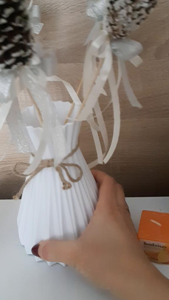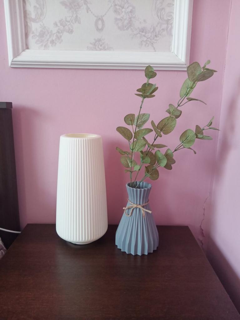 Стильная пластиковая вазочка для декора. Подобные вазы в Hoff стоят по 800₽ меньшего размера, правда они из керамики но вид то тот же и не дотронувшись до неё вы это даже не поймёте. Мне так нравились эти вазочки что решила приобрести тут . Высота вазочки 17 см, пластик плотный не дешевый, без неприятного запаха . Пластик матовый а исполнение просто великолепное. Так же заказала цветочки для этой вазы , так что скоро обзор и на них . Рекомендую к покупке , ваза понравилась .
