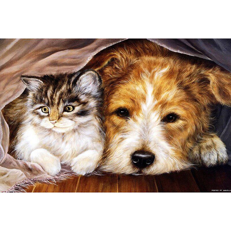Домашний декор DIY 5D Алмазная вышивка Кошка и собака Набор для вышивки крестом Хобби Ремесло