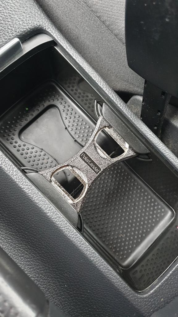 Отлично выглядит! Полностью металлическая с нанесением тёмной краски. В общем вещь добротная, можно покупать. Единственное что по краям выпирающие точки слишком плотно фиксируются когда ставишь как крепление для 2х стаканов!