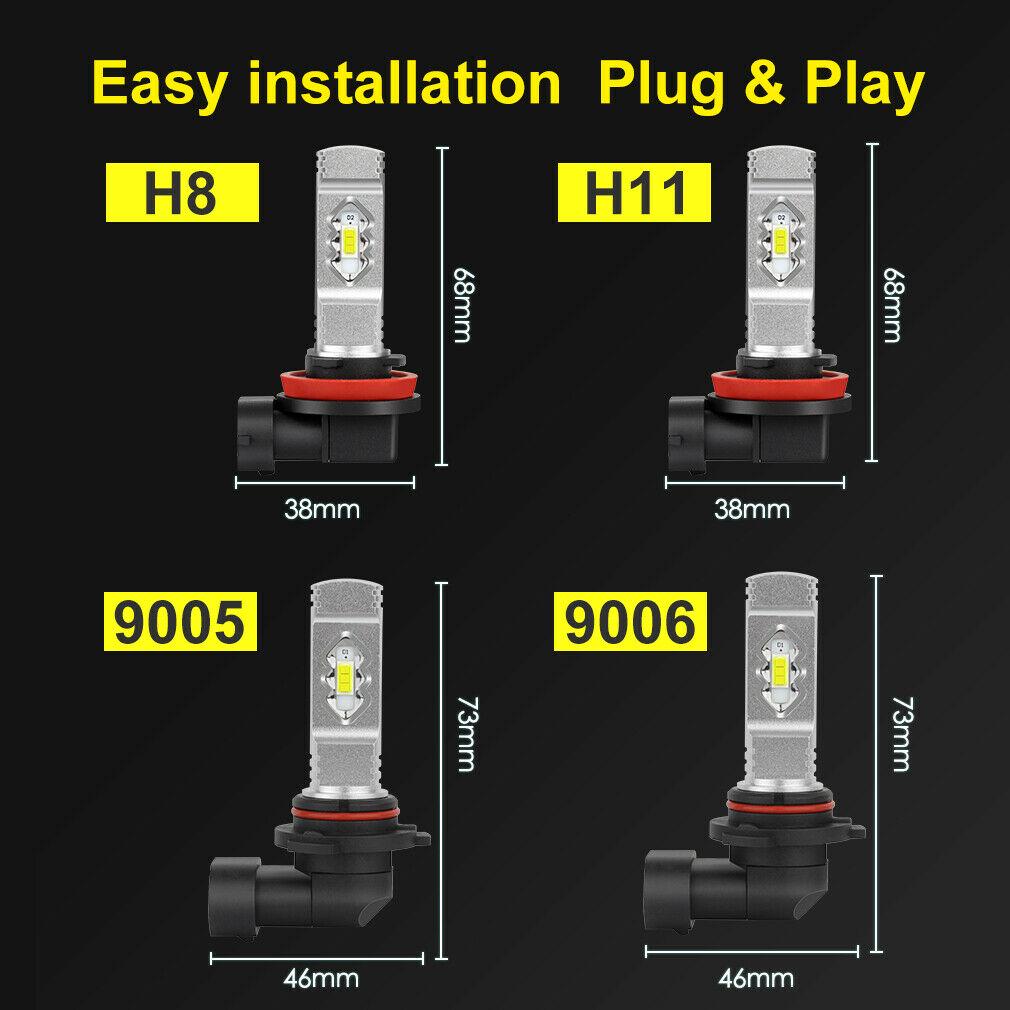 Беспроводные светодиоидные противотуманные автомобильные лампы 8000K H11 LED H8 HB4 9006 9005 HB3 на основе новейших чипов для улучшенной фокусировки. 12в