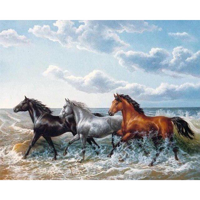 Алмазная картина Лошадь Полный круглый Алмазная вышивка Животные Картина 5D Diy Мозаика Горный хрусталь