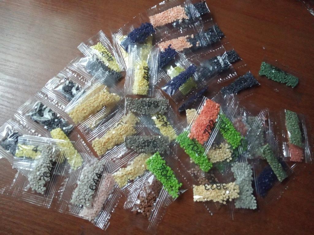 Доставка две недели. Посылка отслеживалась. Картина пришла помятая сверху. После выкладки почти распрямилась. Всё стразы в наличии, много осталась неиспользаванных целых пакетиков. В наличии два комплекта: воск, ручка, лоток и зип-пакетики. Фото готовой картины на расстоянии вытянутой руки смотрится очень красиво. Картина получилась очень яркой. Снизила звезду за помятость и два пакетика были рассыпаны и перемешались между собой.