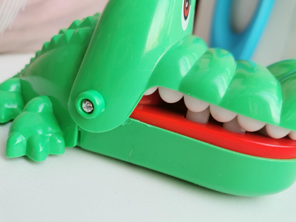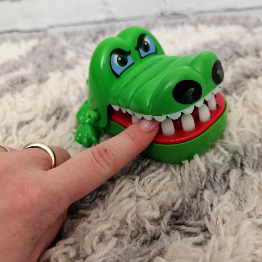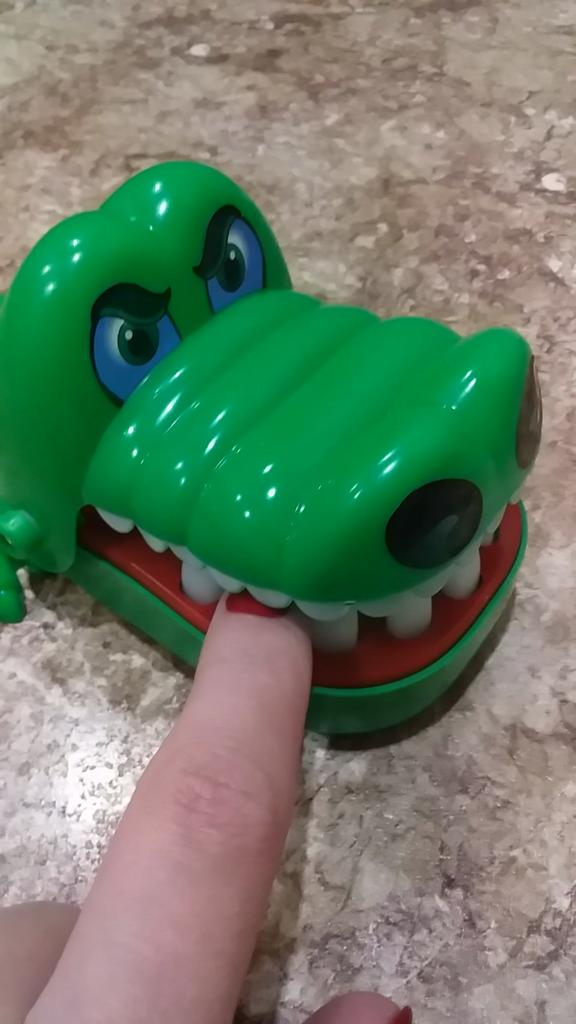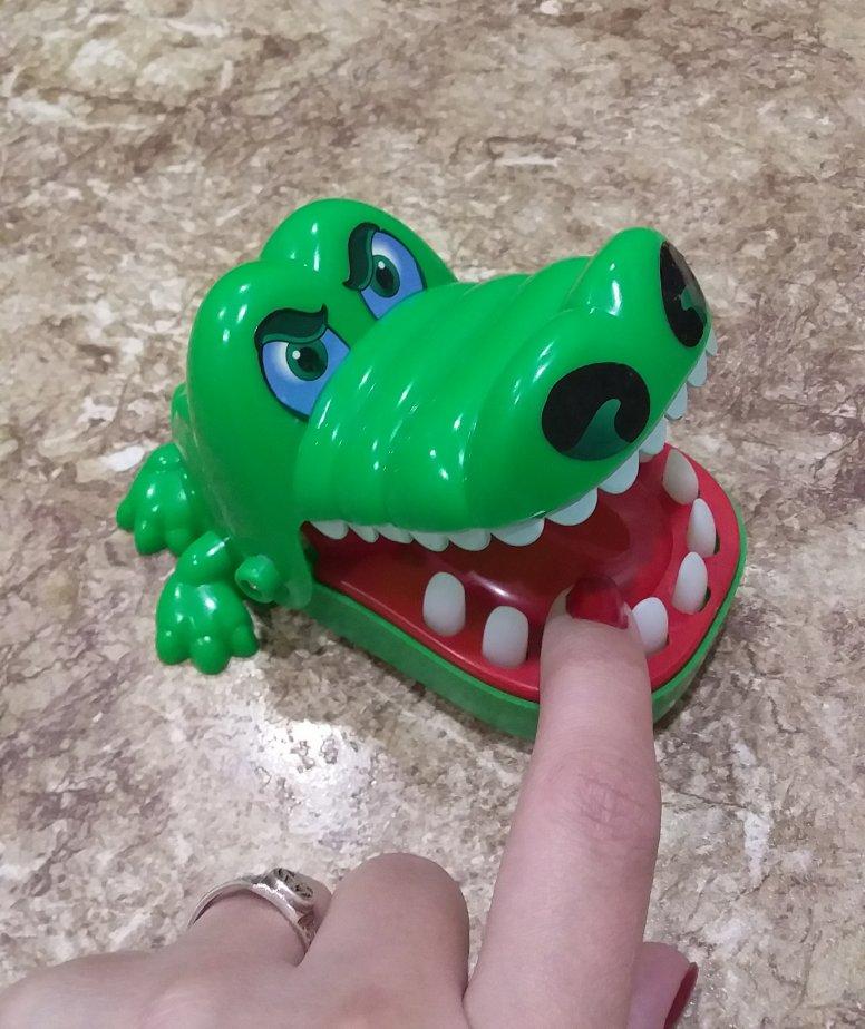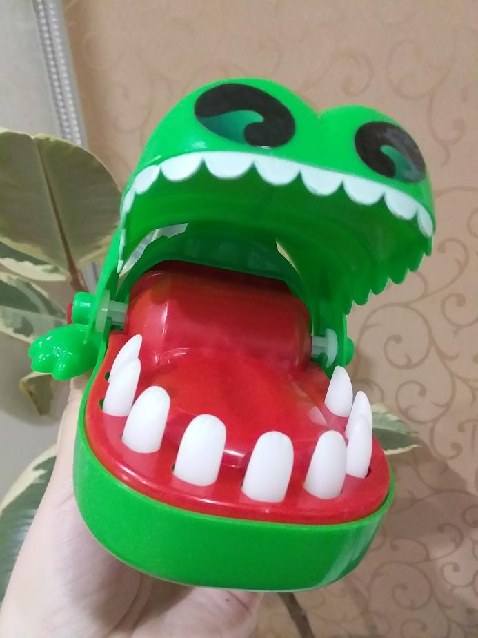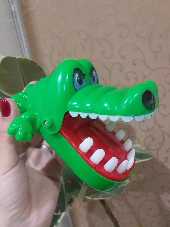 Настольная игра "Безумный крокодил" 👐🏻 Называется "Проверь свою реакцию" 😄 🐊 Такая игра поможет развить у ребёнка концентрацию внимания, ловкость и реакцию. 👐🏻 Игрушка устойчивая, её можно расположить в любом месте: стол, пол, диван. 🐊 Цена с купоном составила 320 рублей. 👐🏻 Пластик крепкий. 🐊 Товар прилетел в пупырчатом конверте. Как играть 🤔 ⚃ Открываем пасть крокодилу; ⚁ Всего у него 13 острых с виду зубов. ⚄ В одном находится ловушка. ⚂ Нажимаем на зубы по очереди. ⚅ Если попали на ловушку, пасть закроется 💥 ⚀ Ловушка прячется каждый раз в разном зубе. Игра не только для детей 😉😉😉 🌟🌟🌟🌟🌟 Удачная покупка 🌟🌟🌟🌟🌟