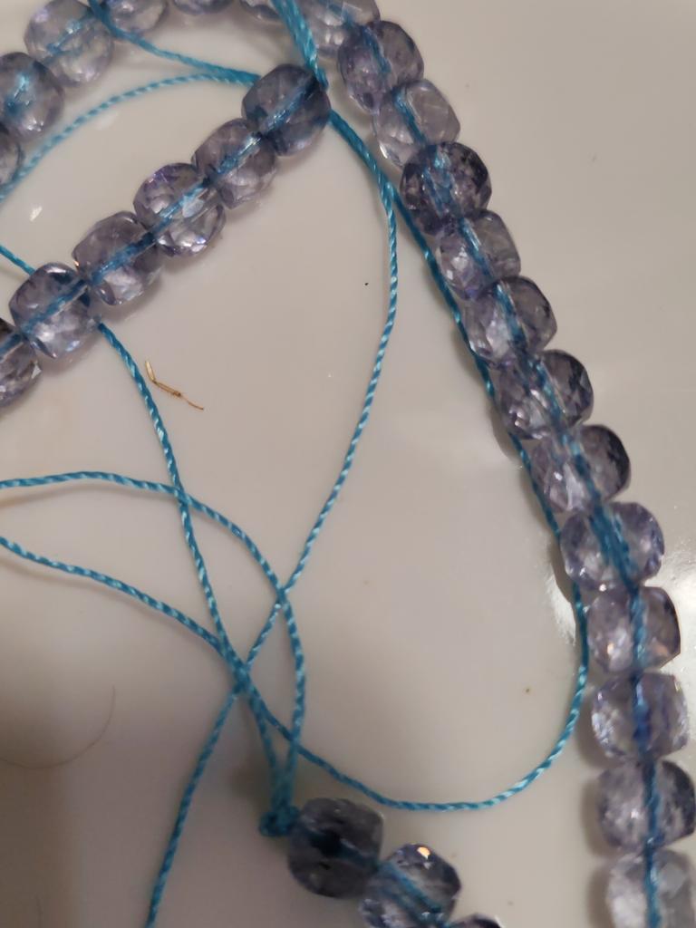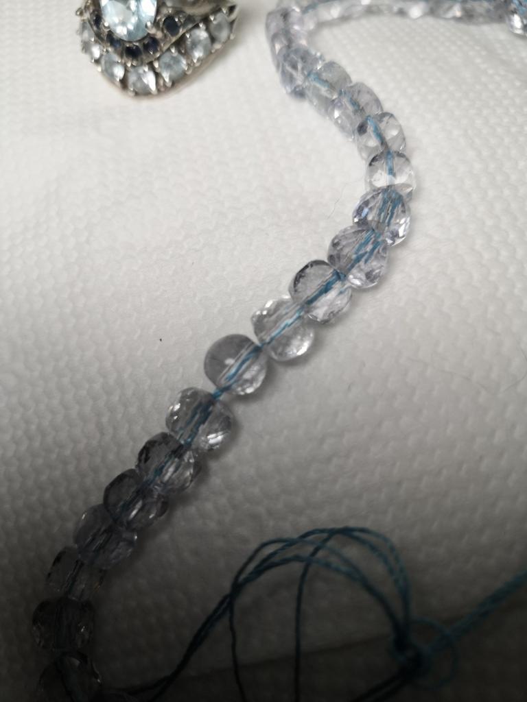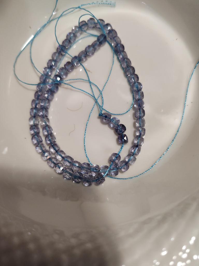 Оооочень разочарованна. Крашенный кварц, бусины попадаются без граней, цвет близко даже не топаз, у меня есть изделия с топазом,я знаю, как он выглядит.Для придания цвета на нитку голубую специально нанизали. Деньги на выброс.Не советую такой товар. Прошу вернуть деньги.