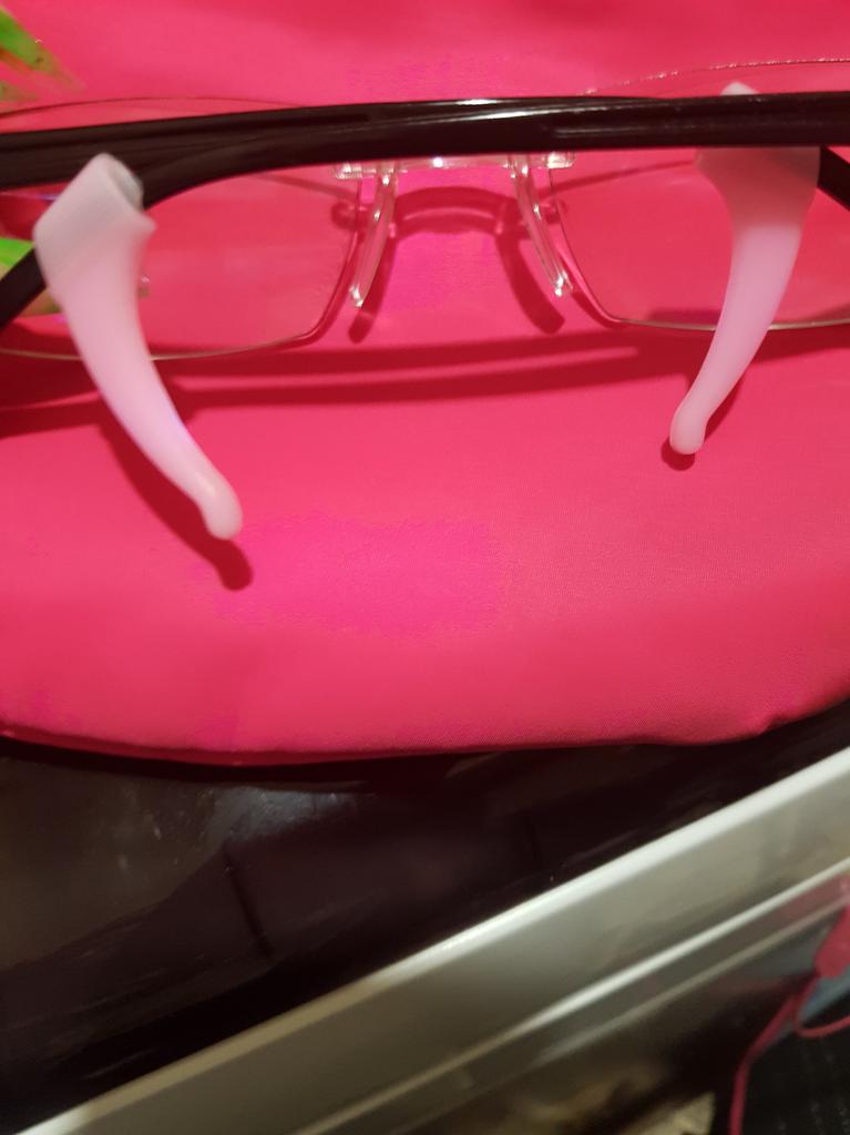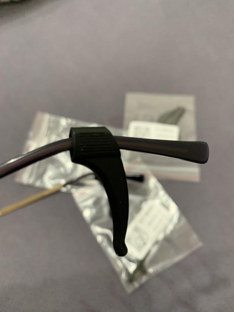 Очень удобные силиконовые держатели. Не сползают с рамки очков да и за ухом не давят. Рекомендую