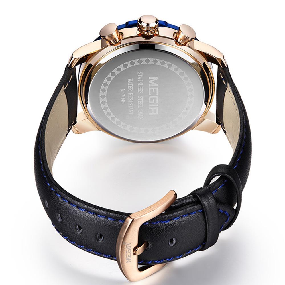 Megir Модные мужские кварцевые часы Хронограф Роскошные деловые повседневные наручные часы Кожаный ремешок Мужские военные спортивные часы 2046