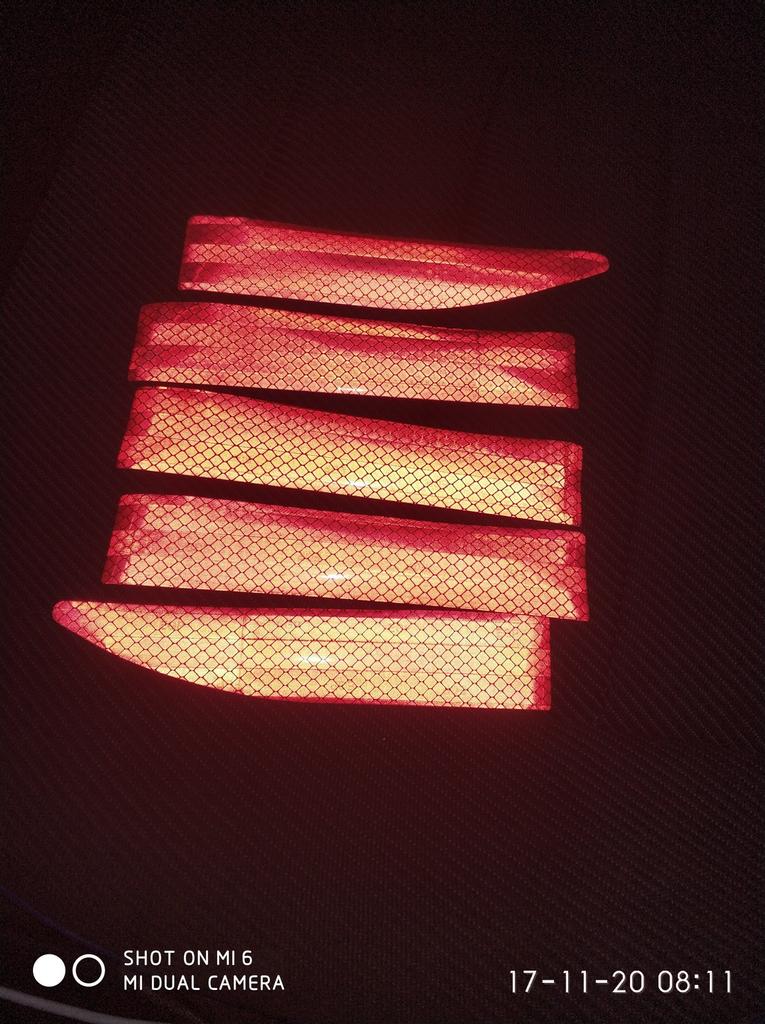 Доставка в ПМР с 13.10 по 16.11, приложил к бампер, светил фонариком, отражает когда свет падает под углом сверху, приклею, посмотрим как будет, пока фото только распаковки, фоткал со вспышкой и без утром при свете.