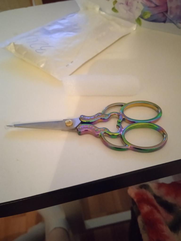 Ну вот наконец то получила долгожданные ножнички. Ножнички очень хорошие, красивые. Режут отлично. Это пришли уже вторые. Первый раз заказала золотые. Товаром довольна. Продовца рекомендую. А вот доставка до Москвы ооочень долгая и первый и второй заказ шел больше двух месяцев. Но не смотря на это заказала ещё и третьи (разноцветные). Если готовы ждать долго заказывайте. Спасибо джуму.