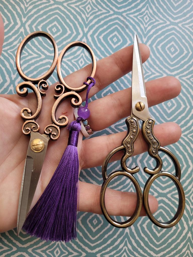 🧵✂️❤️ Ножнички. Винтаж. ❤️✂️🧵 Заказ 25.09 - 11.11. Покупала за 164 руб. Цвет *бронзовый*. ✂️ Отличные ножнички. Подробности на видео. Качество отличное, острые, имеется винт для подтяжки. Заточка и притирка лезвий идеальные. ✂️ Советую 100%! Покупала две разных пары ножниц в винтажном стиле, обе пары шикарные, выбор за вами. Предыдущими (обзор на моей Ленте за 22.12.2022г.) пользуюсь постоянно, даже толстую джинсу режут, как по маслу. ❤️✂️ СПАСИБО! 👍💥✂️🌟🌟🌟🌟🌟 ...А на колечко (фото 9) сделаю отдельный обзорчик, может кому-то тоже приглянется. Промофото продавца.