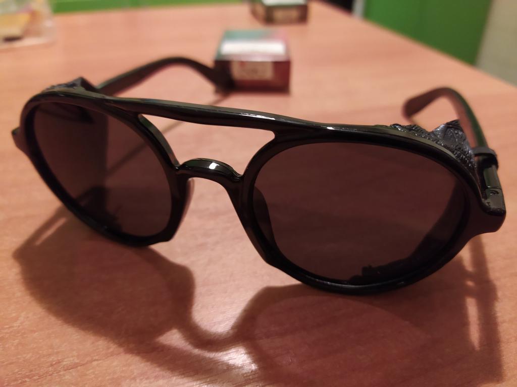 Очки очень прикольные, правда без градиента на шторках и стеклах как на заглавной фото. Просто чёрные. Не поляризационные как в описании. Так что я бы их поостерегся использовать как защиту. Но я брал для стимпанк косплея. Тут они будут самое то. Продавца рекомендую