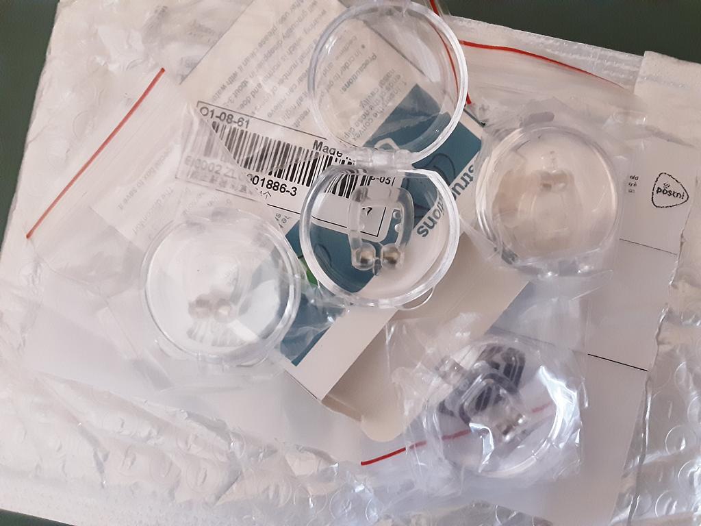 Оперативная доставка товара. Заказывала упаковку в которой 4 штуки. Зажим упакован каждый в капсулу, все как в описании, силиконовый мягкий с магнитами . Брала в подарок храпунам. Товар отслеживался постоянно до получения на почте, когда пришло уведомление. Продавца рекомендую. Всем спасибо за товар и доставку.