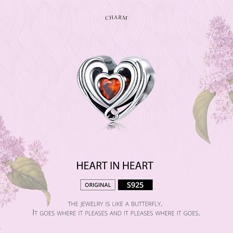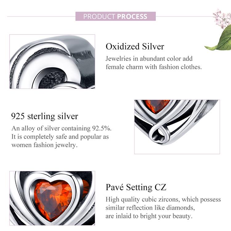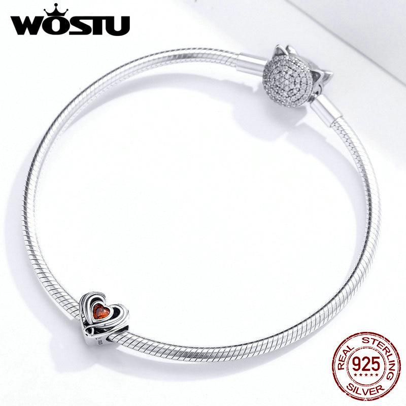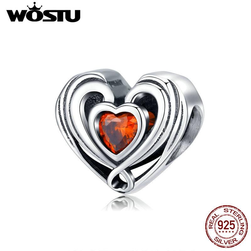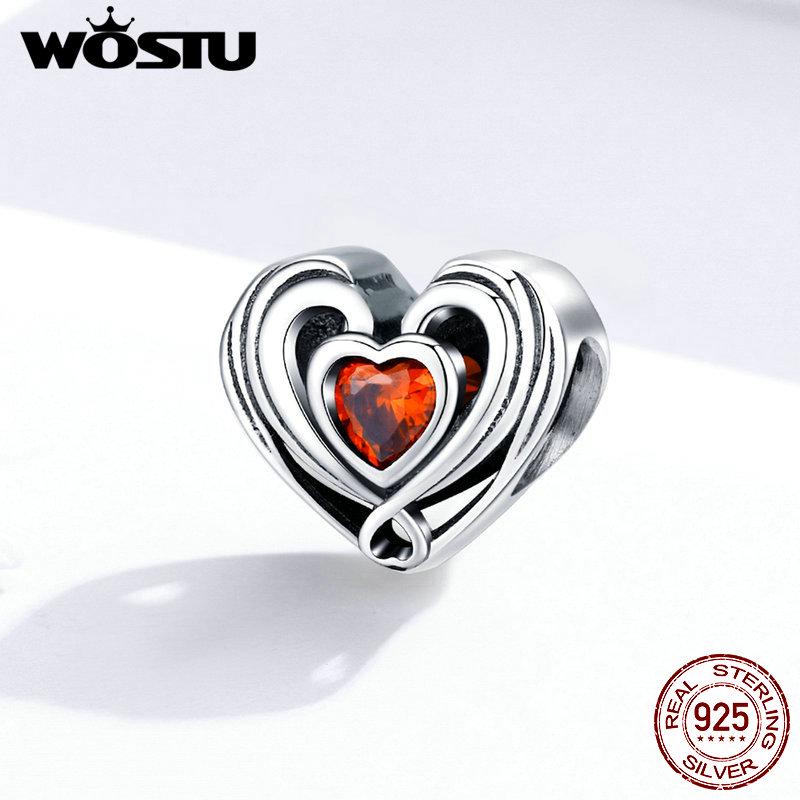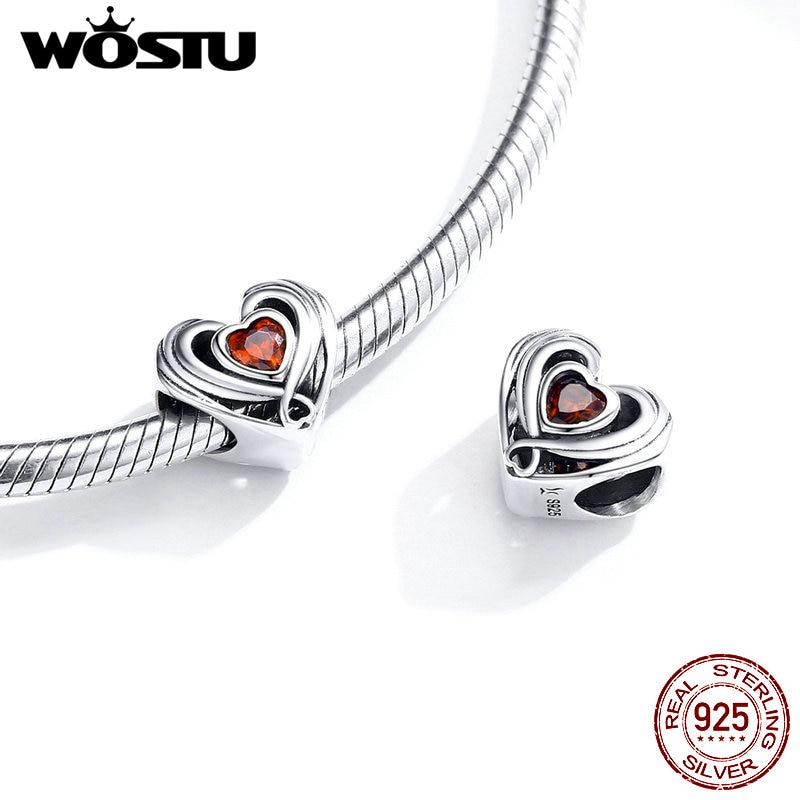 WOSTU Аутентичные бусины из стерлингового серебра 925 пробы в форме сердца, красные подвески с фианитом, подходят для оригинального браслета, подвески, ювелирные изделия