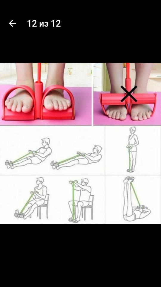 Многофункциональный тренажёр для домашнего фитнеса 💪 С инструкцией 😉 Эспандер предназначен для развития грудных мышц, плечевого пояса и пресса. Неопреновые рукоятки делают занятия более комфортными, а cпециальные крепежи для ног прочно фиксируют ваши ноги. Универсальный и легкий в использовании, эспандер позволит дополнить тренировки большим количеством разнообразных упражнений и сделать их еще более эффективными. Покупала за 477 рублей. Доставка отслеживалась до пункта выдачи. У продавца несколько вариантов расцветки, мне приглянулся фиолетовый.
