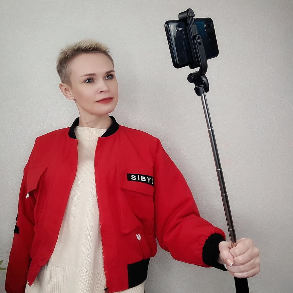 Моя новая помощница👍 Это, ребята, селфи-палка, жутко полезная вещь. У меня есть два фотографа, дочка и муж. Муж не умеет фотографировать: то ноги обрежет, то голову, и вообще, я получаюсь на фото, как колобок, хотя он старается и никогда не отказывается. А дочь умеет фотографировать, но ей лень и некогда. Вот и получается, что самый лучший и заинтересованный фотограф-я сама. А потому мне нужен этот девайс. Селфи-палкой можно фоткаться, взяв ее в руку и вытянув, насколько требуется-она телескопическая. К слову сказать, я ей таким образом практически не пользуюсь. А можно поставить селфи-палку на ровную поверхность-для этого ручка раскладывается в треногу и фотографироваться с таймером, или со специальным пультом дистанционного управления, который находится тут же, в ручке. Я пользуюсь кольцом, вы его видели, наверное, в моих отзывах. Что еще... В отличие от прочих палок селфи, в этой есть функция поворота. Держатель вращается и можно выставить нужный угол. Есть у меня палка без поворота, валяется ненужная. Ну и последнее. Крепление универсальное, раздвигается под любой размер экрана. С ним надо быть осторожнее. Я вот вставляла телефон небрежно, со всей дури, и предыдущая селфи-палка теперь просто палка😩 Заказывала за 558 рублей, еще и с купоном! Сейчас она дешевле. P.S. Кому надобны купоны на 10%, подписывайтесь на мой телеграм канал Плюссайз от Зайкиной. Там, кстати, можно общаться более непринуждённо😁 И не жалейте лайков. Вам один раз пальцем тыкнуть, а мне приятно. К тому же это меня стимулирует писать обзоры и далее, а не просто ставить звезды при получении товара.