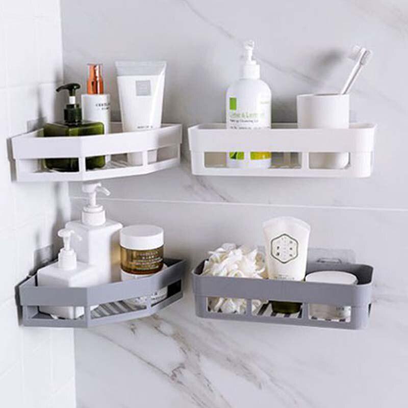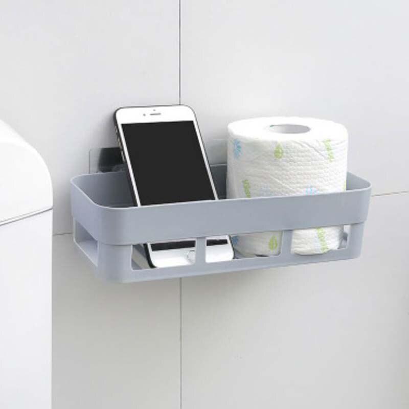 Полка для ванной комнаты без перфорации, пластиковая настенная подвесная стойка для хранения в ванной, корзина, наклейки без следов