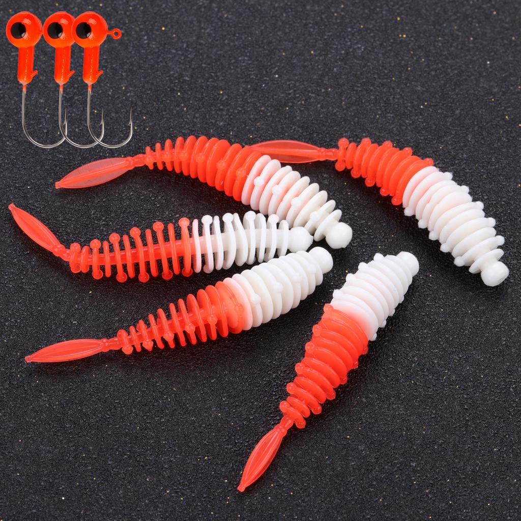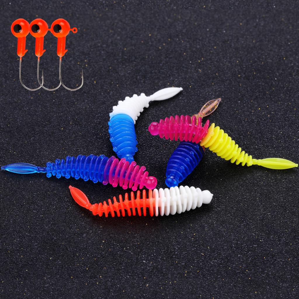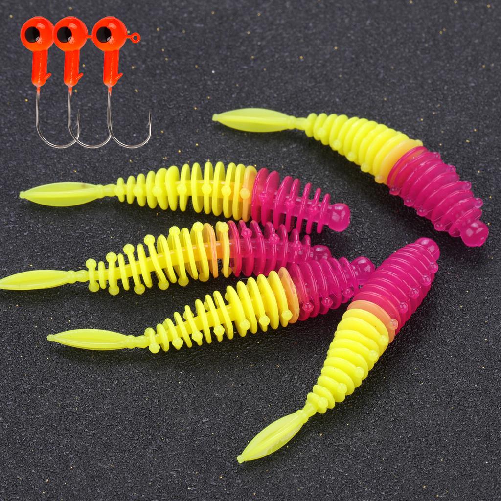 Рыболовные приманки 5 шт. с 3 шт. рыболовными крючками Искусственные мягкие приманки Рыболовные черви Окунь Форель Судак Пресноводные приманки для ловли карпа