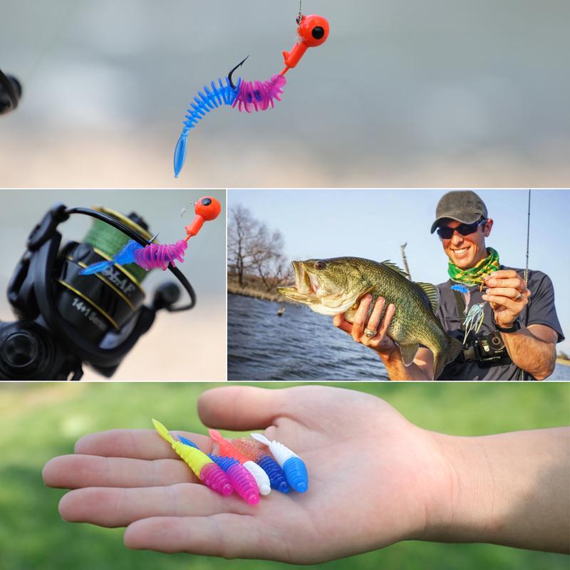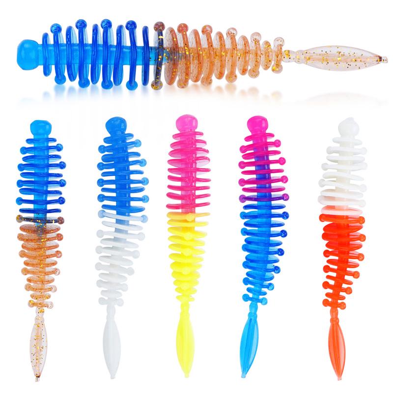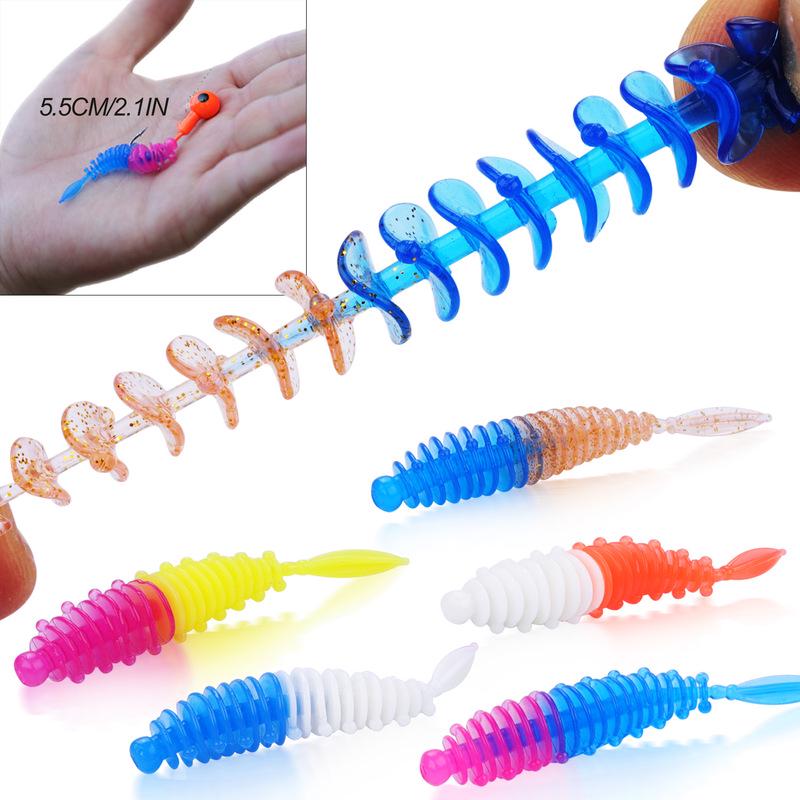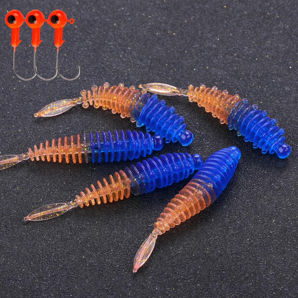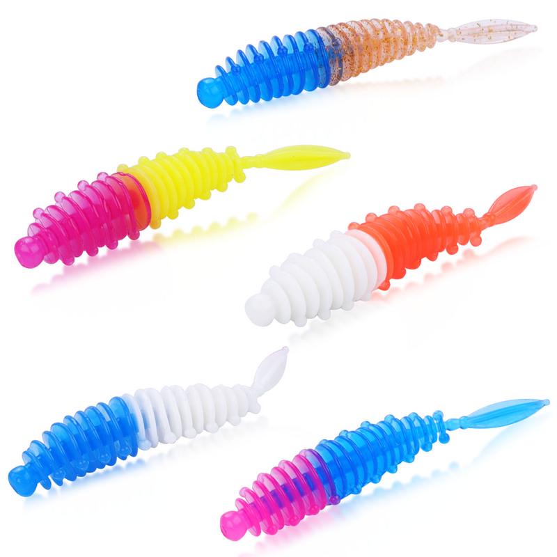 Рыболовные приманки 5 шт. с 3 шт. рыболовными крючками Искусственные мягкие приманки Рыболовные черви Окунь Форель Судак Пресноводные приманки для ловли карпа
