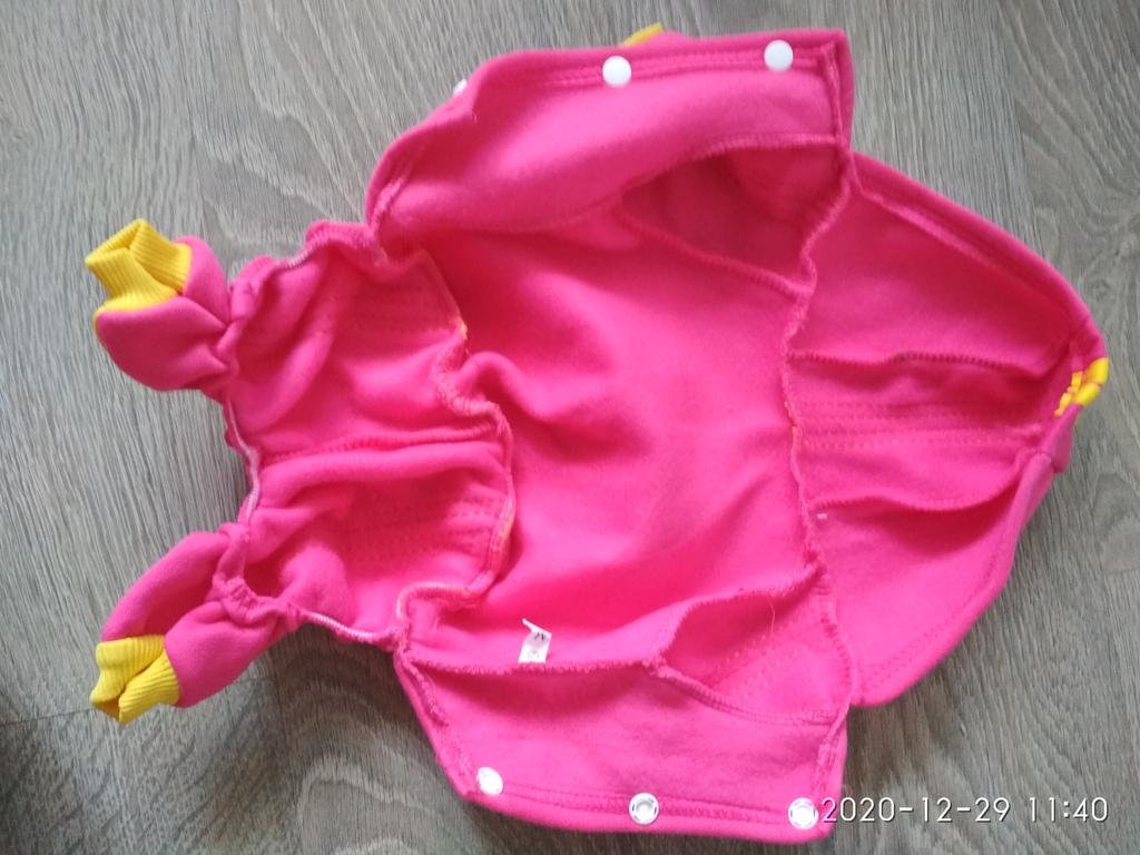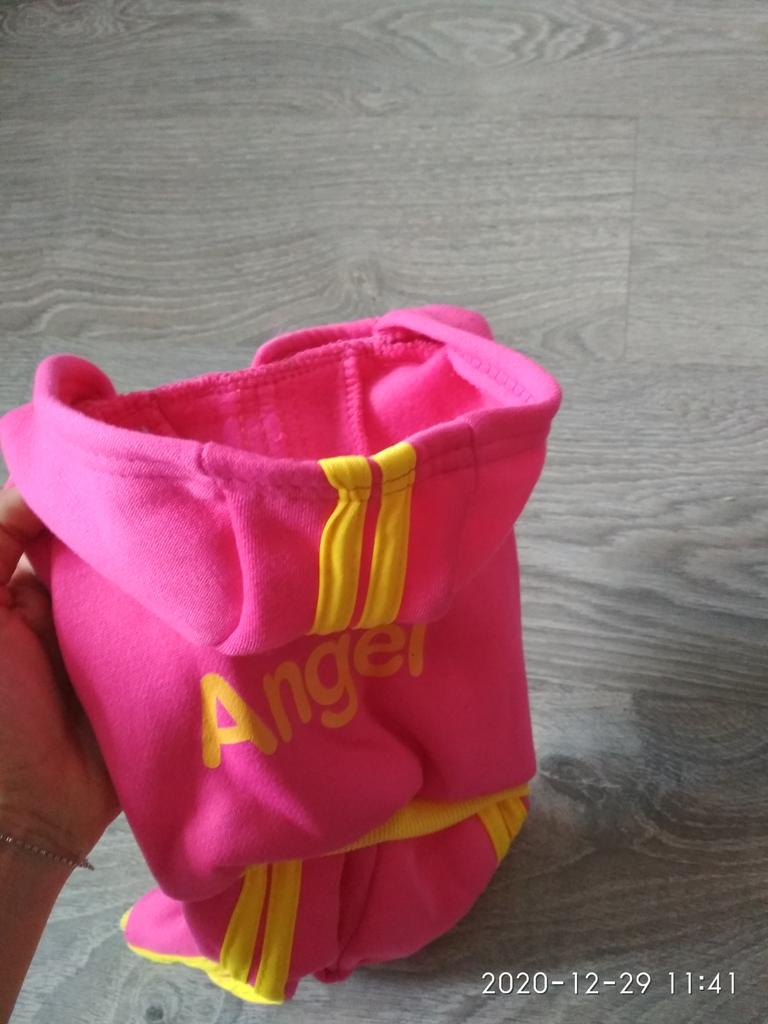 Получила посылку. Запах ужас, надеюсь после стирки запах пропадет. По качесту - синтетика, совсем не теплый. Если бы моя собака сама смогла бы сделать выбор, то отказалась бы его даже примерять. Рисунок не везде жёлтый, где-то полоски оранжевые, где-то желтые-такое впечатление, что жёлтая ткань закончилась, вот и вставили что нашли. Брала аналогичный костюм у другого продавца, там понравился. Больше заказывать у данного продавца ничего не буду. Не рекомендую.