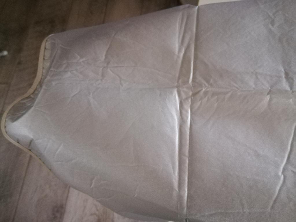 Чехол пришёл целый и невредимый. Параметры такие же как и заказывала. Я давно такой хотела себе купить. Он был сильно пожмаканный, хотя это на качество глажки не имело никакого значения. А теперь разгладился. Гладить одно удовольствие, зеркальная поверхность отражает снизу и ткань в разы быстрее разглаживается. Вот только некоторые ткани соскальзывают с чехла, так как от скользкий. Чехол прямоугольной формы по краям качественно обстрочен бейкой и затянут шёлковый шнурок. Легко стягивается шнурок и чехол плотно садится на гладильную доску. Спасибо продавцу и Джуму. Рекомендую товар и продавца.