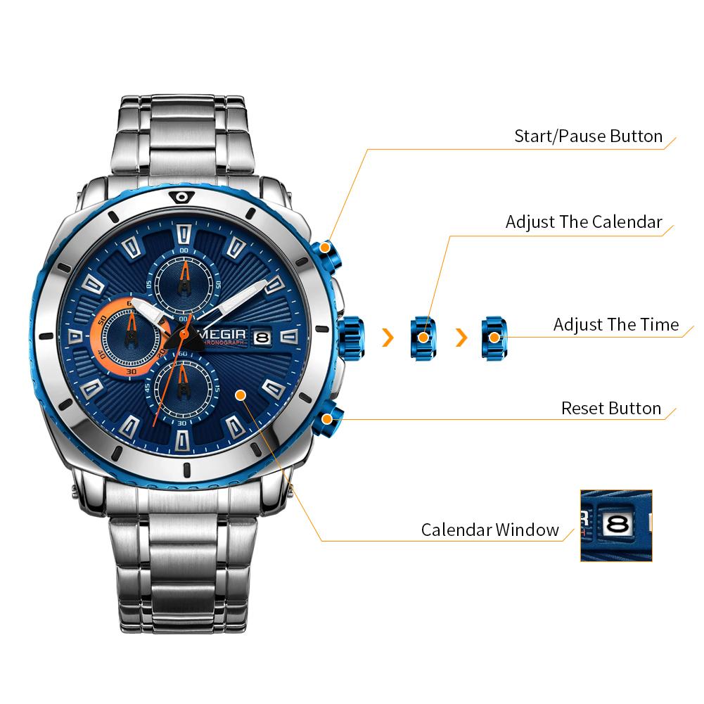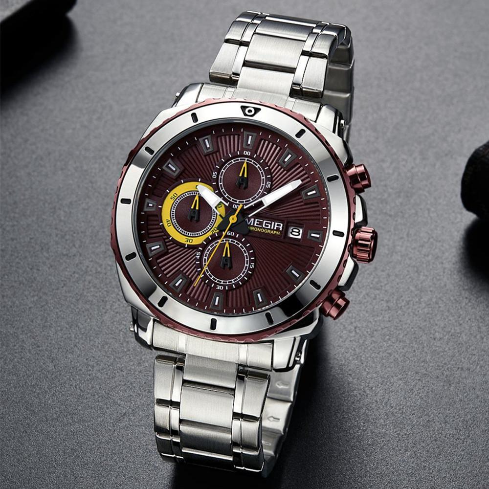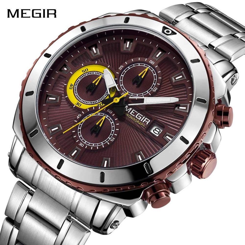 Megir Лучший бренд, роскошные мужские кварцевые часы с ремешком из нержавеющей стали, хронограф, деловые наручные часы, мужские часы Relogio Masculino
