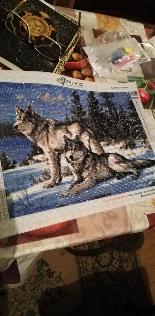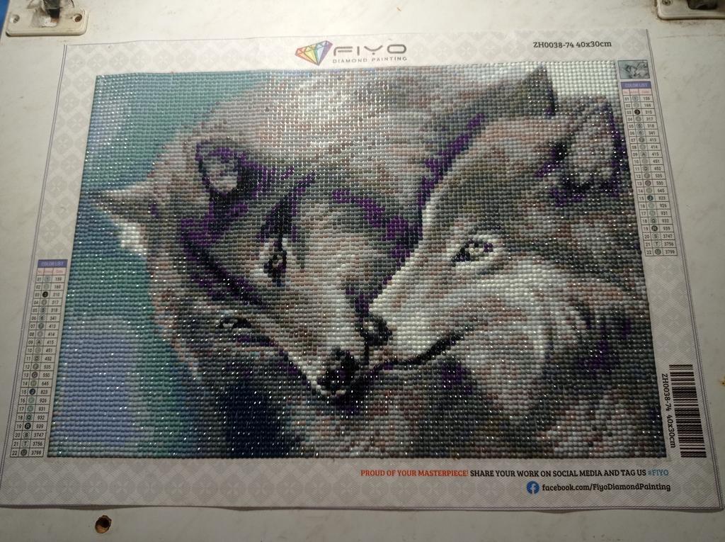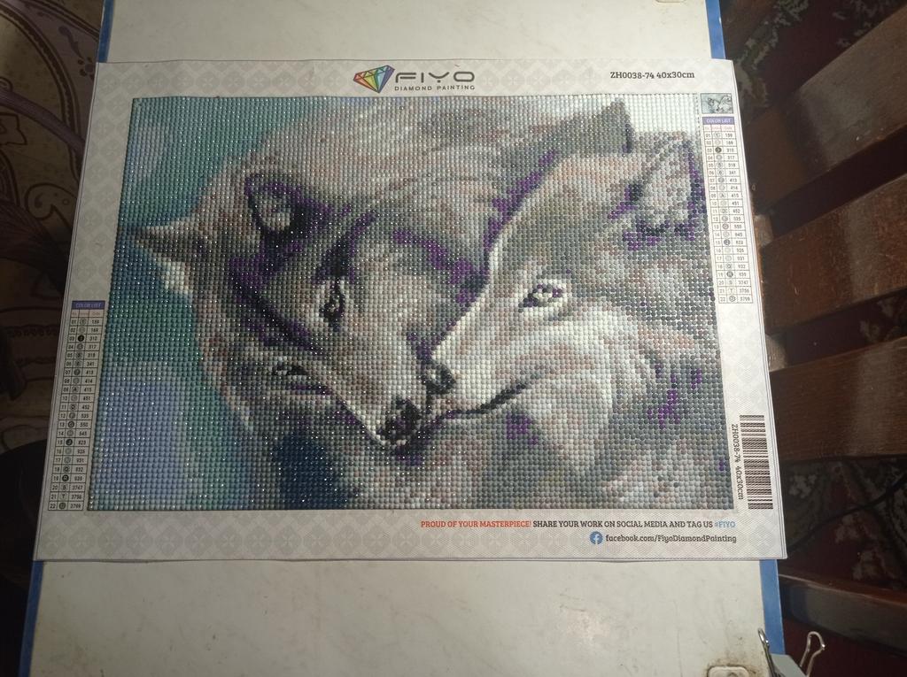 Картину получила, но ещё не собрала. Очень большое разнообразие комплектующих алмазов, работа получается кропотливая. Так как сейчас дачный сезон то мало свободного времени. Как соберу, дополню хватило ли комплектующих. А так очень довольна, подсела я на алмазную вышивку. 😁😉 Эта уже пятая, и ещё на подходе две. 🤷🙂 P.S. выложила картину 😢😢😢 и никак не пойму почему у волков такой окрас. И верхний волк, который воет на луну, получился какой то несуразный, верхняя челюсть тоненькая а нижняя несуразно массивная. Это я ещё верхнюю немного подделала, она была вообще какая то обрубленная. Попробую что нибудь придумать чтобы было эстетично. Кто то так вот пронумеровал картину. Мягко говоря немного разочарована, раньше не было таких огрехов. Правда собирала плачущего ангела а он по нумерации где-то потерял свои слезы. Образец был шикарный и я думала так и будет. Жаль.