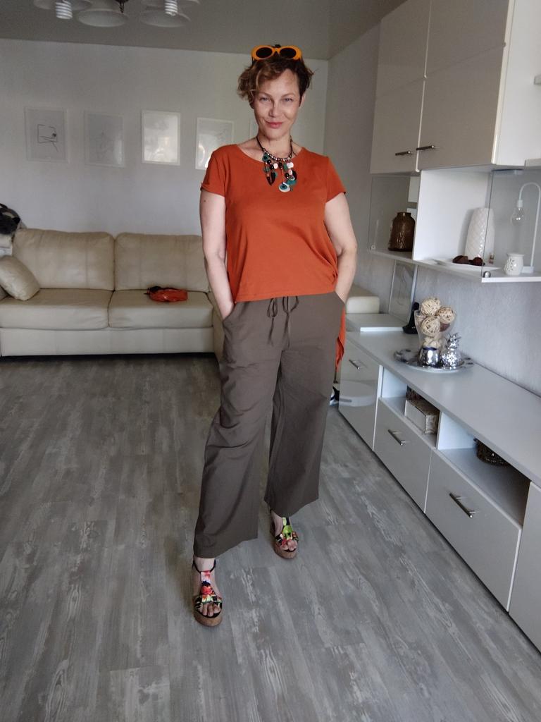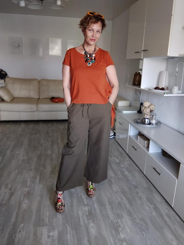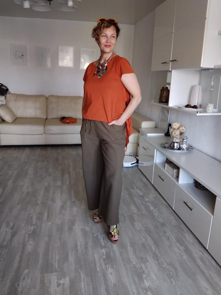 На свой 54 ра-р российский подошли в самый раз. только смотрятся конечно не как на фото, ширина брючины все-таки должна быть шире для моего размера, но тоже неплохо. А так по качеству претензий нет, ткань х/б, приятная к телу. сначала постираю, вдруг даст усадку, потом подошью, а то у меня рост 150. Цвет не оранжевый, а теракот то что "доктор прописал" мечта. Конечно хотелось бы чтобы доставка была быстрее, шло до подмосковья полтора месяца. Думала лето закончится, хотя продавец отправил быстро. Рекомендую и продавца и бренд и товар!!!!