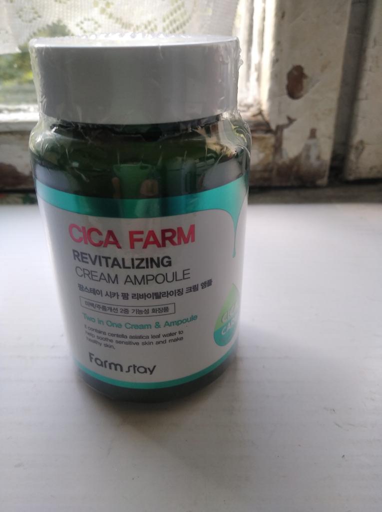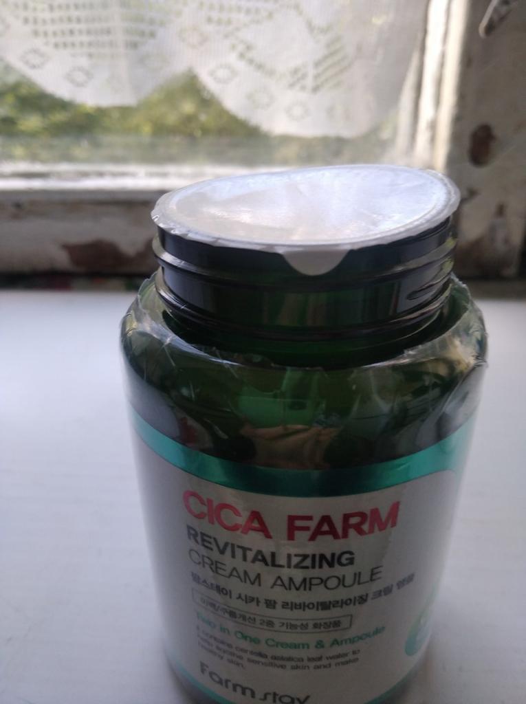 💗Farmstay Cica Farm Revitalizing Cream Ampoule. Обожаю крем с центеллой от farmstay. Закончилась уже третья баночка. Сейчас напишу причины мой любьви 😏: 🟣 Лёгкая текстура. Гелевый крем при нанесении тает и легко распределяется по коже. 🟣 Приятная и не интенсивная отдушка. Аромат быстро исчезает с кожи. Вовремя нанесения её можно почувствовать. 🟣 Большой объём при доступной цене. 🟣 Успакивает раздраженную кожу. Если использовать ежедневно: снижает покраснения и уменьшает высыпания. 🟣 Хорошо увлажняет. 🟣 Отличная база под макияж. Кожа мягкая и увлажненная. Пользуемся кремом в двоём с мужем. Он привереда и это единственный ежедневный крем, который он готов наносить зимой и летом. Для меня идеальный крем на летний период. Кому подойдёт: 💜 Жирной и комбинированной коже. Нормальной или сухой - на летний период. Зимой может не хватать увлажнения. ✨Отличный базовый крем. Может подойти если чувствительная и реактивная кожа.✨ Советую попробовать. Если не подойдёт на лицо, то отлично послужит как увлажняющий крем для тела 👀