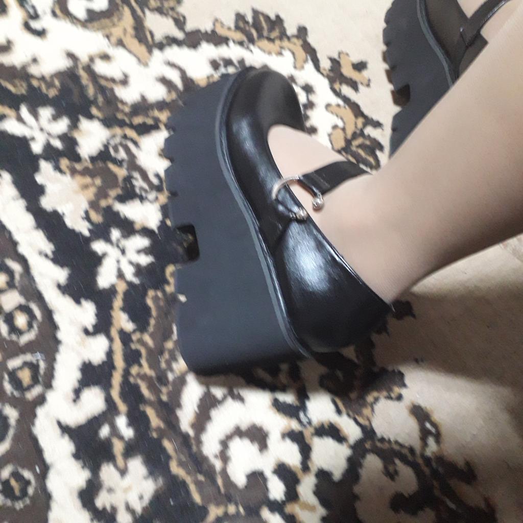Отличные туфли. Очень понравились мне и моей дочери. Высота платформы 5 см, с каблуком 8 см. Хорошая ребристая подошва. Пришли упакованные в воздушном надутом пакете. Застежка похоже не отстегивается, но сбоку резинка, так что легко можно и так одеть.