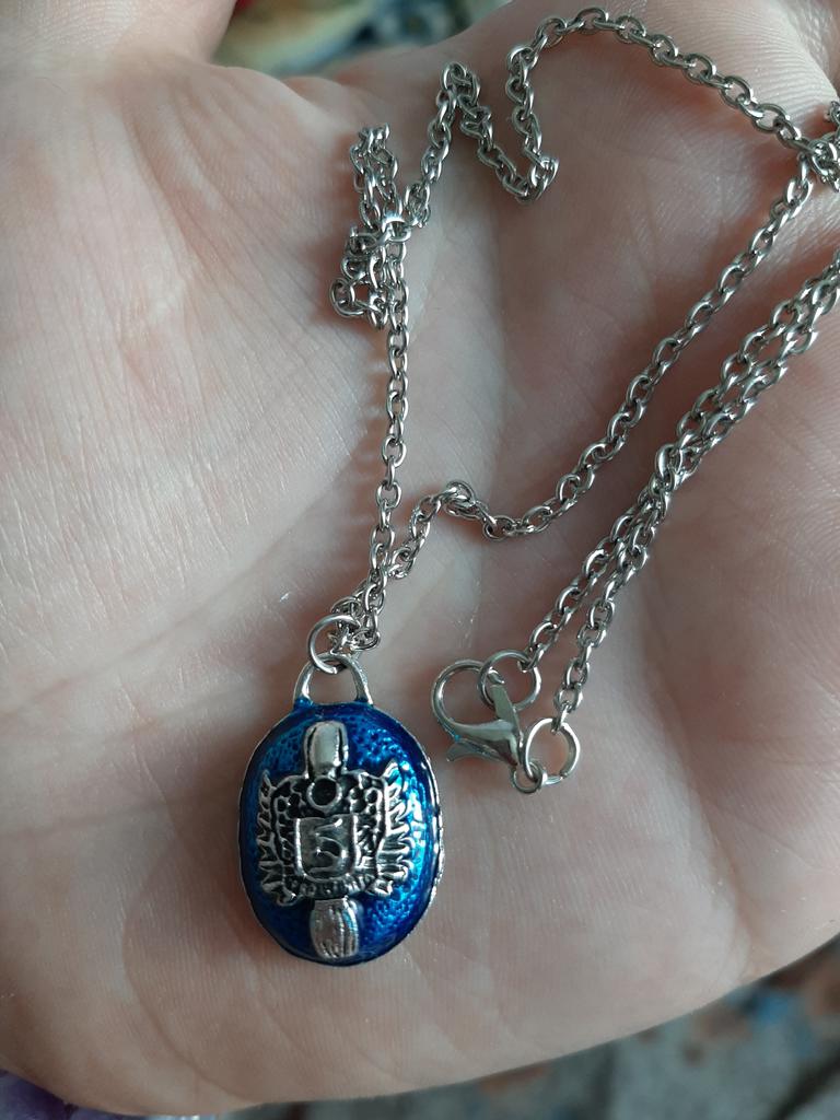 Выглядит отлично. Сделано качественно. Кулон не мелкий, тяжеленький. Надеюсь мужу понравится.