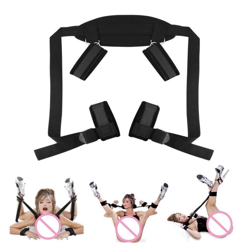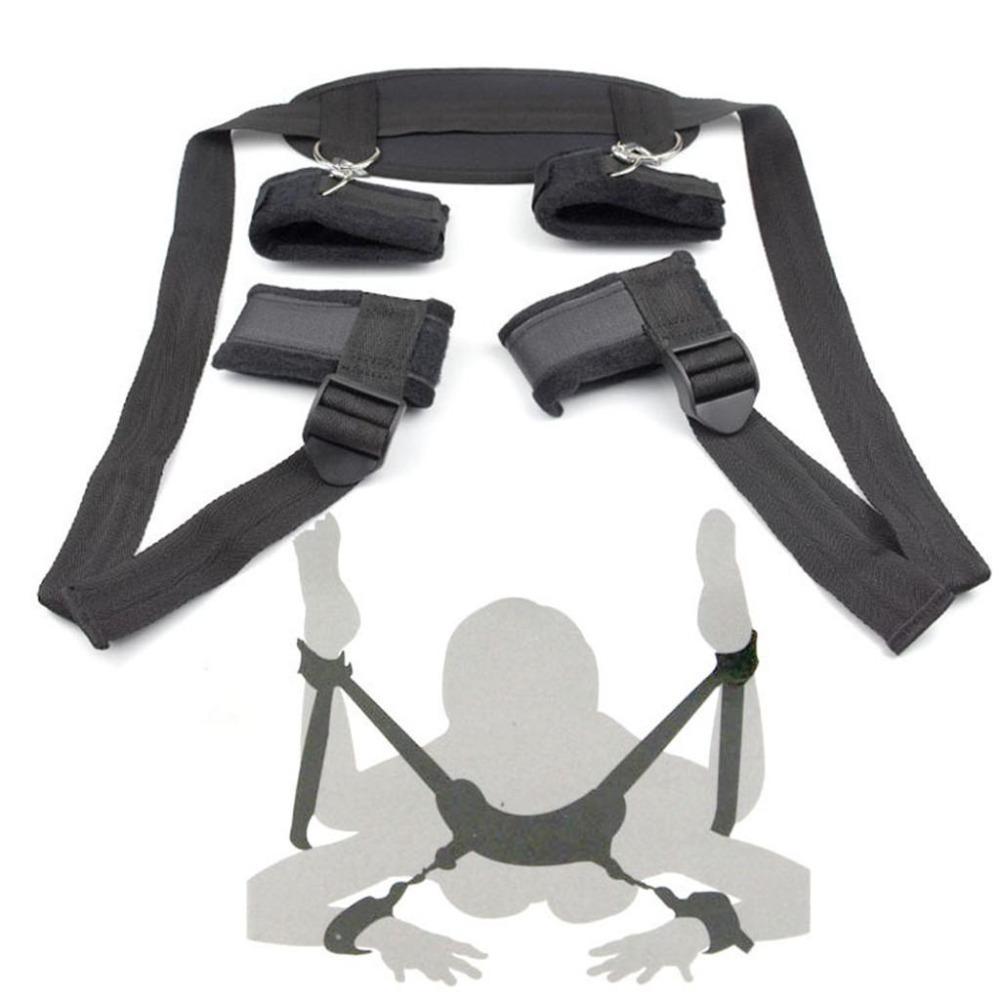 Секс-игрушки, 4-х сторонний ремешок с манжетами на щиколотках, запястьях и шее