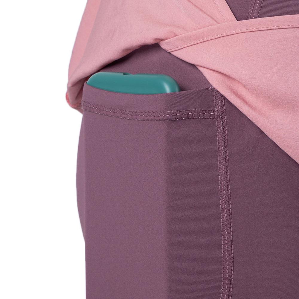 Двухслойная конструкция. Рыхлый боковой щелевой слой обеспечивает эффективное покрытие и держит дно не показанием; компрессионный внутренний вкладыш с боковым карманом подходит для смартфона и освобождает руки во время бега.