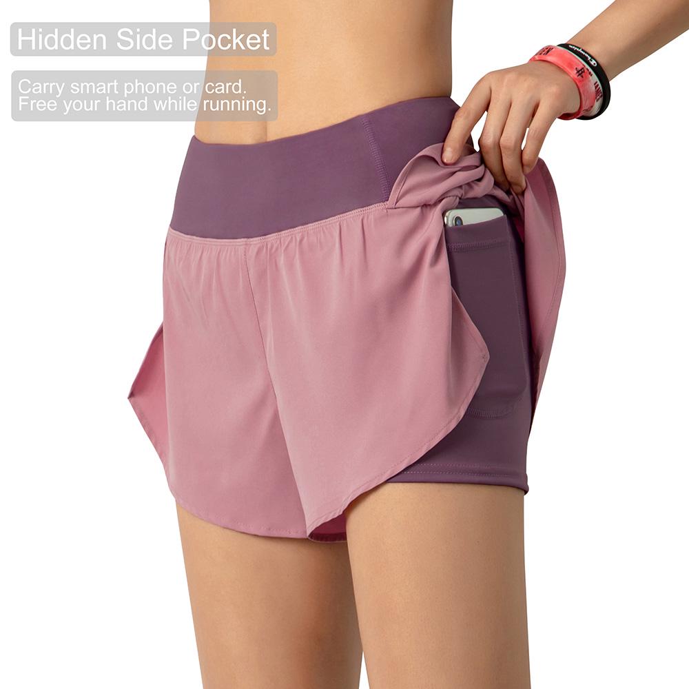Спортивные шорты 2-в-1 для дома, тренажерного зала и на открытом воздухе. Он имеет высокоэластичную ткань из полиэстера и спандекса, эластичный широкий пояс, свободный и разделенный слой и эластичный дизайн внутреннего вкладыша. Боковой карман к внутреннему слою удобен для переноски телефона или карты. Ищите его для бега, приседания или отдыха.