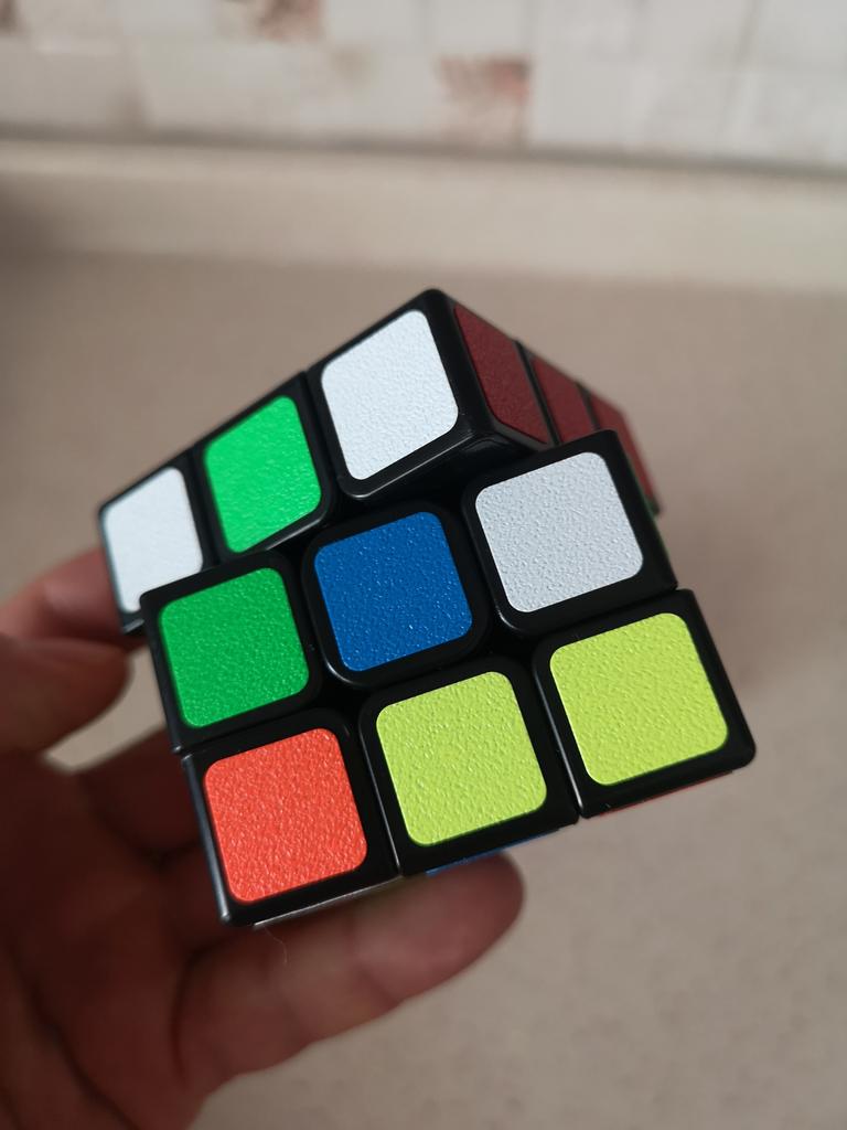 Классный кубик.немного меньшего размера,чем ожидал.но супер.легкр крутится,с шершавой поверхностью.