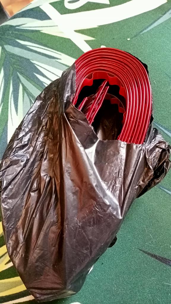 В принципе все нормально, хоть и скручено не самым аккуратным образом, возможно при транспортировке раскрутилось, но приехала без повреждений. Дополнение: при попытке приклеить эту ленту на бампер ничего не получилось, она не держится. Надо теперь ещё и двухсторонний скотч +.