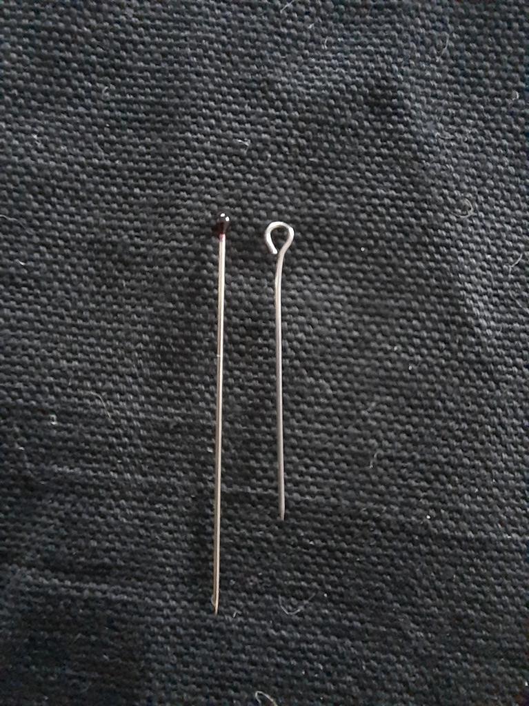 Ха-вот это иголки Если слегка плохо Ватто зрение Это в моём случае Они такие тонкие Береш их только когда магнитами обвесишся Они тонкие как леска у нитковдевателя, и гнутся так же Зато у тонких тканях ни каких зацепок не будет,